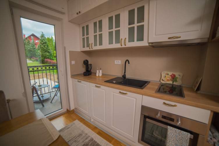 Sweet Home poseduje dnevnu sobu, kompletno opremljenu kuhinju za ljubitelje kuvanja, dame i majke, odvojenu spavaću sobu sa udobnim francuskim ležajem i posteljinom od čistog pamuka, kupatilo sa veš mašinom (izuzetno praktično zbog dece) te lep balkon, odmor za oči i dušu.