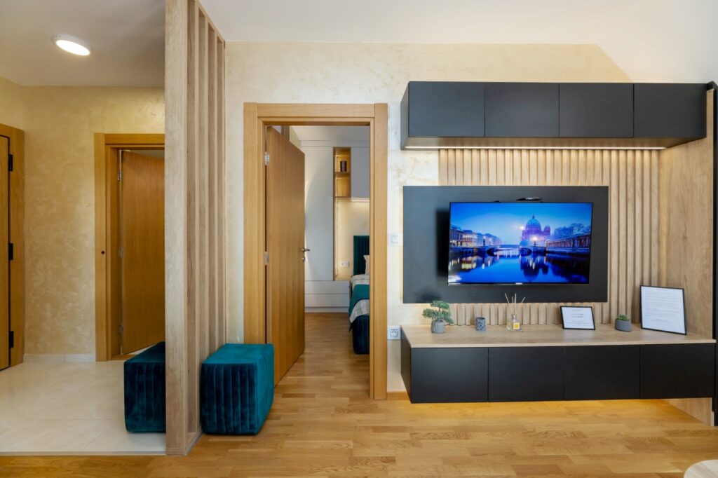 Apartmani poseduju wifi internet, smart lcd tv velikih dimenzija (dnevni boravak i spavaća soba), kablovski tv program, luksuzni nameštaj, potpuno opremljenu kuhinju (pribor za jelo i pripremu hrane, frižider, ravna ploča, kuvalo…).